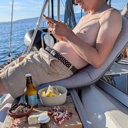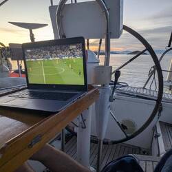 Later in the day, we go for a nice walk, meet a local goat family along the way, and discover yet another beach for a swim (still no underwater dip for Bart), and a beer (brought from home, of course). That evening is the Champions League final. Even though we’re in Italy and Internazionale Milano is playing for the title, there’s not a single village in sight—let alone a pub to watch the match. Maybe that’s for the best, in hindsight... So we fire up Starlink, open Bart’s laptop, and settle down on the best terrace around: our aft deck. Beautiful football, in a way, though not exactly a thrilling final. Still, our sports-loving hearts got what they came for. A perfect last evening on the Maddalenas.Читать далее