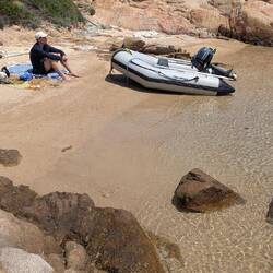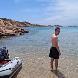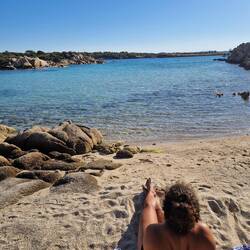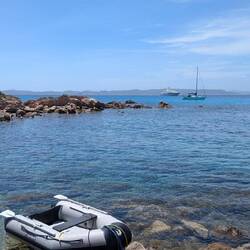 🇬🇧🇺🇸⬇️Op de Maddalena eilanden zijn de afstanden heerlijk kort. Met tochtjes van 3, 4 of 5 mijl verplaatsen we ons van hier naar daar om vooral van het prachtige weer en helderblauwe water te genieten. Zo ook in de baai. Overdag is het nog te heet om op stap te gaan, maar eind van de dag pakken we de dinghy naar de kant. We lopen we klein stukje, want opnieuw is het helaas vooral prive terrein en vinden dan een verlaten strandje voor opnieuw een verfrissende duik.