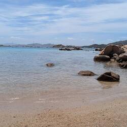 On the Maddalena Islands, the distances are wonderfully short. With trips of just 3, 4, or 5 nautical miles, we move from one spot to the next, mainly to enjoy the beautiful weather and crystal-clear water. Same goes for the bay. During the day it’s still too hot to go exploring, but in the late afternoon we take the dinghy ashore. We walk a short distance—again, much of the land is unfortunately private—and eventually find an abandoned little beach for another refreshing swim.
