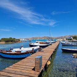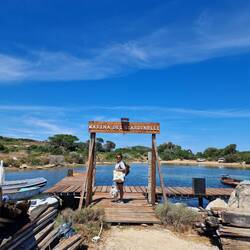 We’ve found another lovely spot, and from here we can also take the dinghy to a supermarket and try to get rid of our trash. We sneakily dock the dinghy at the marina on the island on the other side of the bay. We had already read that garbage disposal can be a bit tricky in Sardinia—and that’s definitely true. We walked around for a good 20 minutes without finding a single bin. Just a few dog-waste bag dispensers and some containers that looked like they hadn’t been emptied—or even opened—in years. Eventually, we find a messy construction/dump site on a deserted boatyard where we decide to leave our trash.