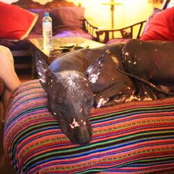 A looooong bus ride later and we ended up in Miraflores Lima. Staying in a bohemian hostel called the Healing dog it has a naked hairless mascot called Pisco who became pissed off that I'd taken hisLes mer