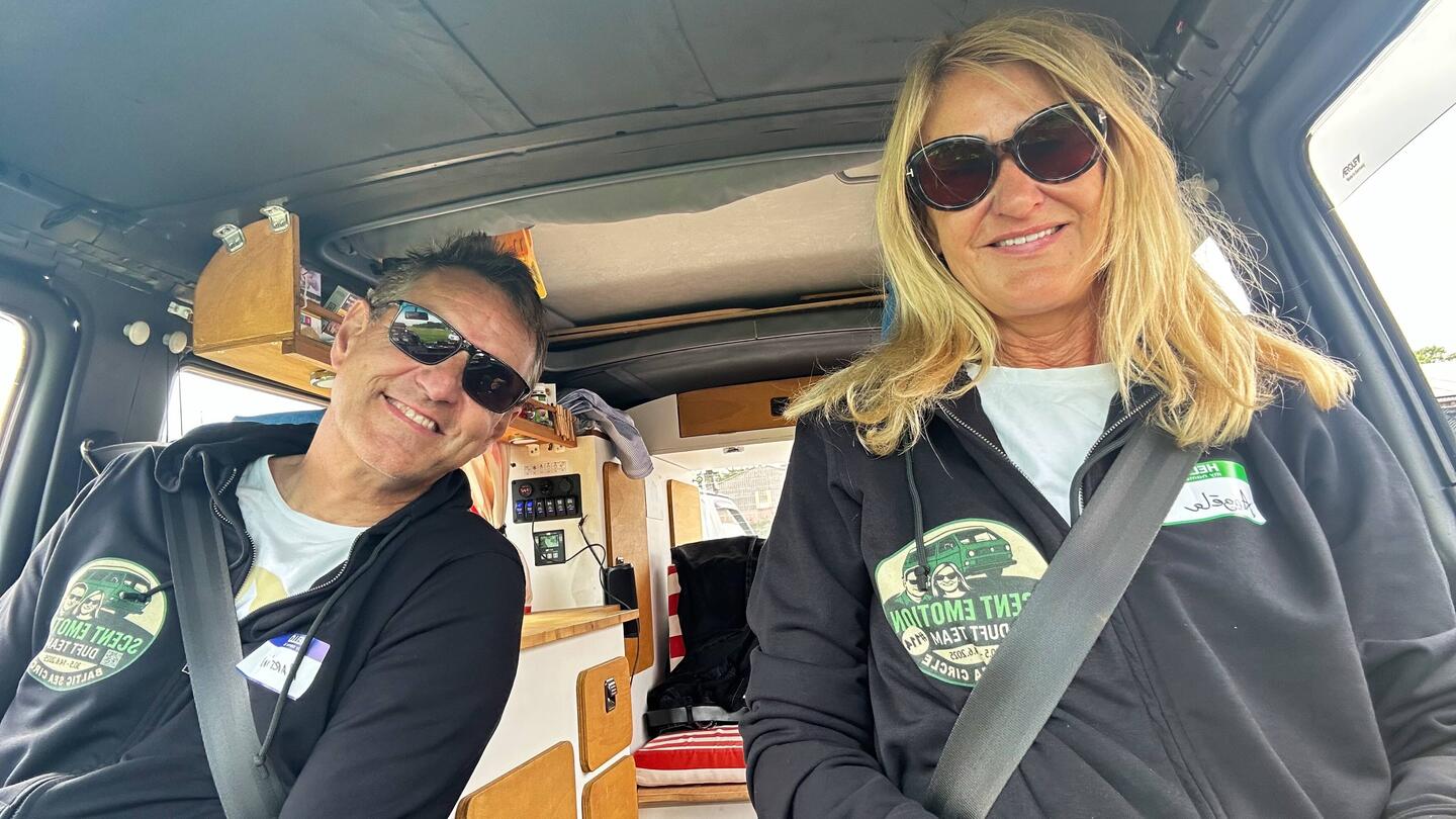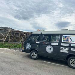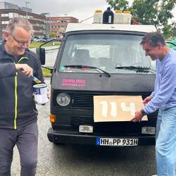 Motoren röhren, Bullis husteln, laute Musik