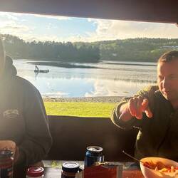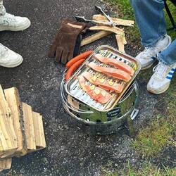 Statt Elche jagen wir heute die Task of the Day: Lagerfeuer an – Mission erfüllt! 😎 Dazu: Sauna mit Aussicht, leckeres Essen (keine Dosenravioli!) und gute Gespräche bis die MückenLæs mere