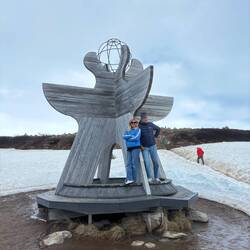 Wir haben den Arctic Circle erreicht – kalt, windig, aber eindeutig ein Meilenstein.