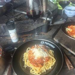 Es gab Burger, Bier, Sauna und... Duschen! (Was auch immer das genau war – wir haben’s genossen.)