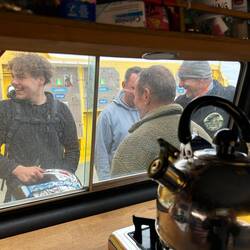 Wir mittendrin – mit Kaffee in der einen, Karte in der anderen Hand.
