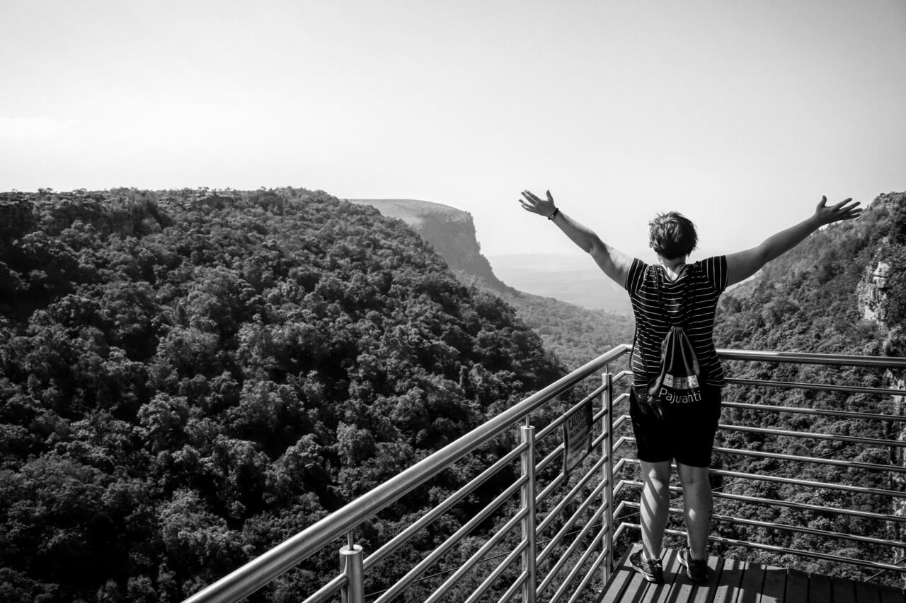 Und da ist er auch schon unser 4. Tag unserer zweiwöchigen Reise. Die Zeit vergeht hier so verdammt schnell, leider haben das Urlaube immer so an sich, in einem Moment zählt man noch die Tage bis zum Abflug und ehe man sich versieht, tritt man die Heimreise an. Aber nun weg mit diesen Gedanken, wir befinden uns noch am Anfang unserer Reise und deswegen Mundwinkel hoch und jeden Moment genießen und im Kopf abspeichern. Da wir bei dieser Unterkunft ja leider ein Downgrade bekommen hatten, ging es zum Frühstücken wieder in die Goldene Möwe. Ja nicht die gesündeste Art zu frühstücken, aber immerhin günstig, lecker, frisch und für südafrikanische Verhältnisse relativ schnell. Gut gestärkt mussten wir heute aber wirklich sein, denn insgesamt sechs Highlights warteten auf uns. Also nichts wie ran ans Steuer und auf in die Region Mpumalanga. Hier befinden sich die Ausläufer der Drakensberge (höchstes Gebirge des südlichen Afrikas) und somit eine unbeschreibliche Vielfalt an landschaftlichen Höhepunkten. Für mich also ein Eldorado sozusagen. Unser erster Stopp war der "The Pinnacle Rock". Ein erstes richtig tolles Highlight entlang unserer Route. Glücklicherweise waren wir ziemlich frühzeitig dort, wodurch wir uns Massen an Menschen ersparten und relativ entspannt diesen Aussichtspunkt begutachten konnten. Danach ging es weiter zum "God's Window". Hier hieß es dann ca. 20 min steil bergauf Wandern bis man am höchsten Punkt angelangt ist. Dieser doch sehr anstrengende Weg hat sich zu 100% gelohnt, denn belohnt wurde man mit einer Aussicht, wie man sie nur aus Filmen kennt. Da wir auch hier wieder sehr zeitig oben waren, waren wir anfangs noch alleine. Gerade als ich mich in Pose geschmissen habe und meine nachdenkliche Stellung mit Blick in die Ferne eingenommen hatte, sammelten sich die Menschen hinter mir. Eric sagte nichts und genoss diesen Anblick. Als ich mich dann umdrehte und nach hinten schaute, standen da plötzlich gefühlt 20 Personen die alle darauf warteten meinen Platz einzunehmen. Nun ja was soll ich sagen, ich hätte mir durchaus einen besseren Ort vorstellen können. Was solls, scheint hier oben Normalität zu sein. Also schnell Foto gemacht und ab weiter Richtung den anderen Aussichtspunkten hier oben. Als wir diesen Punkt abgehakt hatten, standen zunächst zwei Wasserfälle auf unserem Programm. Einmal die "Lisbon Falls" und einmal die "Berlin Falls". Auch hier waren die Anlagen wieder identisch aufgebaut und man bekam jedes mal einen Flashback, doch immer wieder einen positiven. Die Anlagen hier sind alle extrem sauber und gepflegt und der Eintritt von ca. 1 € pro Person für uns Europäer auch mehr als erschwinglich. In dieser Hinsicht war ich wirklich mehr als überrascht. Leider waren die beiden Wasserfälle in meinen Augen etwas "ernüchternd". Entweder es lag daran, dass es hier (wie in Deutschland) einfach viel zu trocken ist, oder diese Wasserfälle haben einfach generell wenig Wasser. Man kann sie mal gesehen haben, muss man aber nicht. Und dann wurde es auch schon Zeit für eine Mittags-Stärkung. Zum Glück hatte ich noch schnell beim vorbeifahren ein Schild gelesen mit "traditional south african food", innerhalb weniger Minuten saßen wir mutterseelenallein in einem wunderschönen kleinen und gemütlichen Restaurant entlang der Panoramaroute. Nun war endlich der Zeitpunkt gekommen, wo ich mal lokales Essen ausprobieren konnte. Klar hatte ich auch diesmal wieder ein wenig Respekt vor dem was mich erwarten sollte, doch mein Mut sollte belohnt werden. Zum ersten Mal in meinem Leben probierte ich Gnu in Form eines Eintopfs. Was soll ich sagen? Ich war ziemlich begeistert und glücklich mit meiner Auswahl. Es hat wirklich fantastisch geschmeckt und ein weiterer Punkt meiner Südafrika-Liste konnte ebenfalls gestrichen werden. Für mich gehört lokales Essen einfach mit dazu. Mit vollen Magen machten wir uns dann auf dem Weg zu unserer letzten Station: "Blyde River Canyon". Mein absolutes Highlight dieser Route und die Bilder im Internet hatten nicht zu viel versprochen. Es war für mich der beste Programmpunkt entlang der Panaromaroute. Ich hatte zuvor noch nie einen Canyon oder ähnliches gesehen und war einfach nur sprachlos. Diesen Ort können wir beide nur empfehlen. Ein unglaubliches Naturschauspiel was man hier findet. Und zugleich ein Schauspiel zum Hände über den Kopf schlagen. Denn leider meinen es einige Touristen zu ernst was das "Perfekte Selfie" anbelangt und bringen sich schnell in Lebensgefahr. Doch Eric und ich schauten uns nur an und schüttelten mit dem Kopf. Nein danke. Dann nehmen wir doch lieber alles mit unseren Sinnen auf und berichten davon, denn was hat man denn davon, wenn wir unter der Erde liegen, nur wegen dem einen PERFEKTEN BILD.