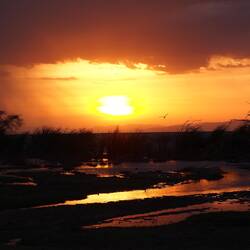 I reach Ileret and its sandy surroundings and with that the final destination of my current trip: Lake Turkana! 42 °C, strong humid wind from the lakeside, a punch in my face. The water is warm, interestingly smelly, slightly salty and has a soapy texture. After having crossed Gabbra territory here the tribe calls itself Dassanach. The cattle is drinking and locals are bathing so obviously no crocodiles around. Hopefully! Anyway, it was an awesome trip up here, so I would categorize an unplanned encounter with a croc as "the real African adventure" and would not have any reason to complain ;-) The locals dry Tilapia, Nile Perch and Catfish in order to export it into the country. The children rip dried chunks off the fish and chew on it like on leather. I park in a dry riverbed under a tree for the night and enjoy the sunset with distant rain. The whole evening and morning I have a crew of local kids around.Les mer
