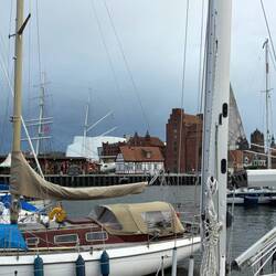 Da wollten wir gestern hin. Weil die Welle jedoch direkt auf den Hafen stand und es eine unruhige Nacht geworden wäre, entschieden wir uns für den Hafen Kirchdorf auf Poel.