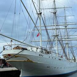 Der Darß steuerbord quer ab.