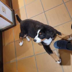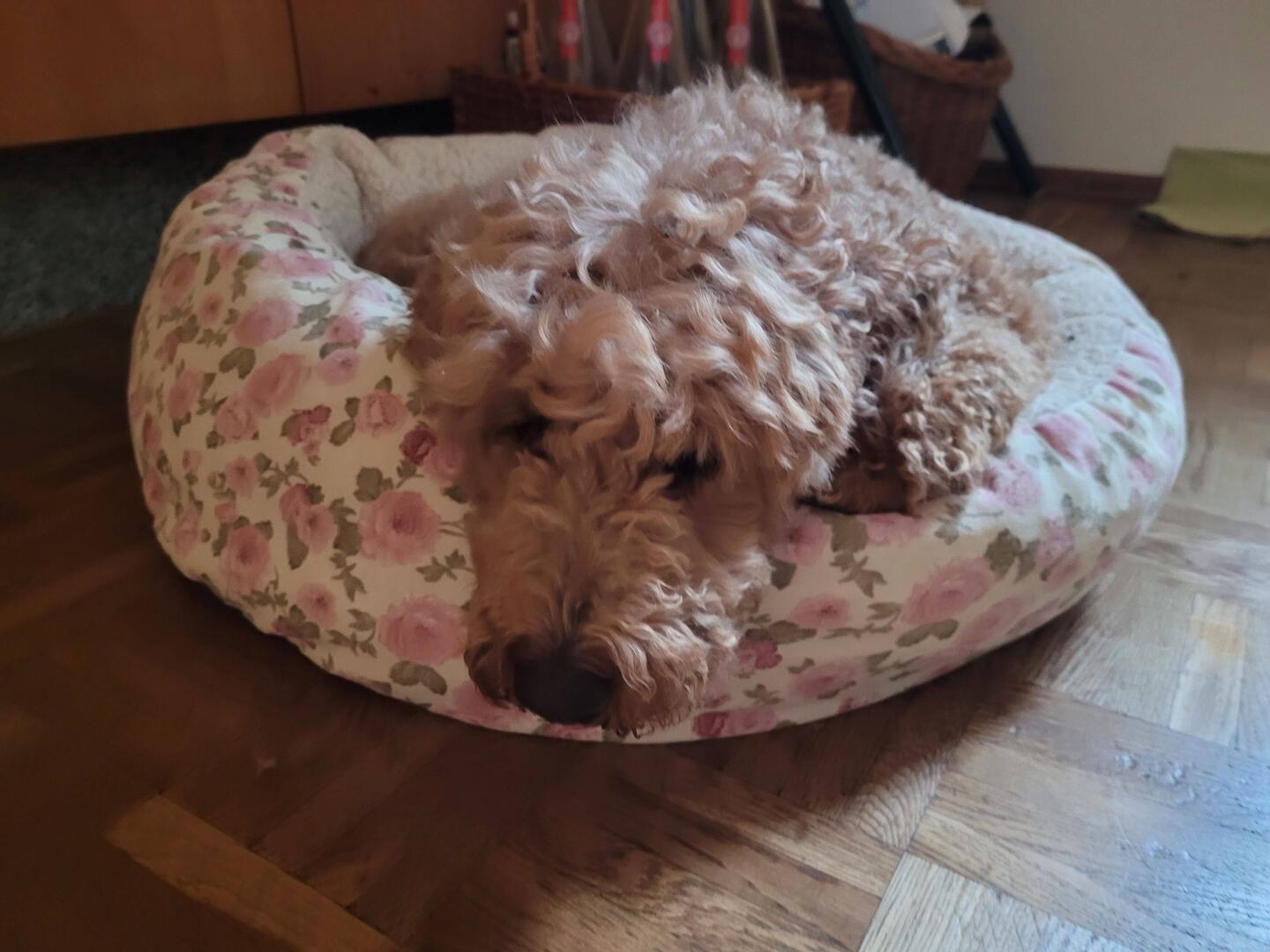 Wir fahren Richtung Aalen. Sitzen gemütlich nochmal unter einem Vordach beim Regen und fahren am nächsten Tag früh los. Sehr flauschiger, sehr süßer Hund wohnt hier.