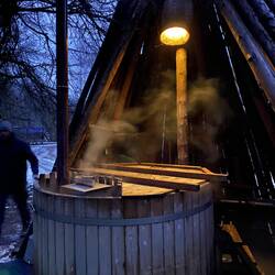 Nette Party Location mit spartanischen Schlafplätzen für heute Nacht! Aber jetzt erstmal in die Sauna zum aufwärmen 🧖🏻♂️
