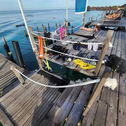 Last dive this afternoon. Rinsed our dive gear and letting it dry in the sun (while we enjoy a sunset beer).