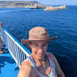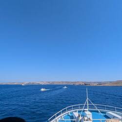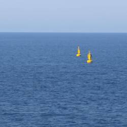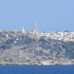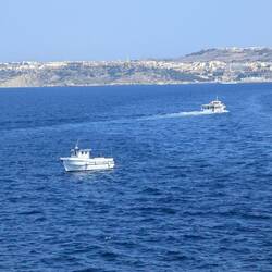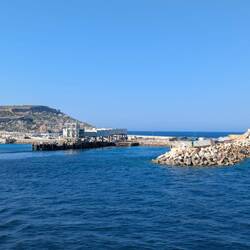Our dry day before flying. Car ferry to Gozo, we can see the Cirkewwa dive sites from the ferry (yellow buoys are the two wrecks).