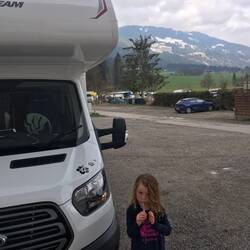 Some great views of the mountains as we drive across to Füssen, both kids excited by the sight of snow, and we find another great spot to pitch up.