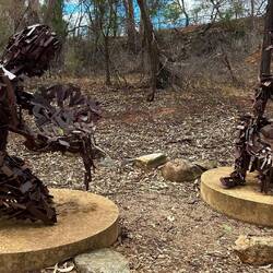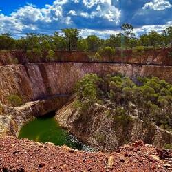 There are 2 trails that explore the site and the original diggings with the vertical mines and the 5 modern open cut mines. We did both trails at a total of 4km with 109m elevation.