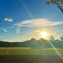 Clear blue skies and sunny ☀️ Calmer start to the day and a little cooler with a high of 36 degrees 🙏🏻