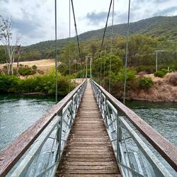 First we jumped on our bikes and the High Country Rail Trail ⛰️ 🚴🏻♀️🚴🏻, which has a gate from the Showgrounds, and rode from Tallangatta to Huon, crossing the Sandy Creek Bridge, out and back (24.5km). The 600m bridge would normally cross the lake when full and is sat on the original rail pylons from the bridge that services the Cudgewa branch line, which was closed in 1981