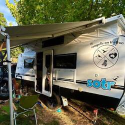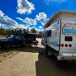 Dinner tonight was veggie pasta 🍝, a concoction made from all the ‘stuff’ that needed to be eaten - left overs and things needing to go before we cross the border into NSW. The aromas coming from camp SOTR were awesome, if only smell-o-vision was a thing, tasted just as good 😋
