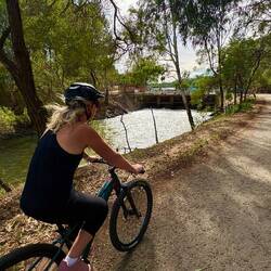 We jumped on the bikes and headed to Company Dam (Comps Dam to locals), completed 1867 and originally constructed to supply water to gold claims ⛏️then for the steam engines 🚂