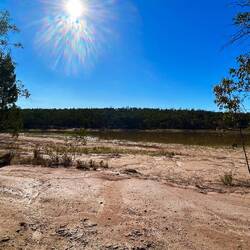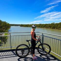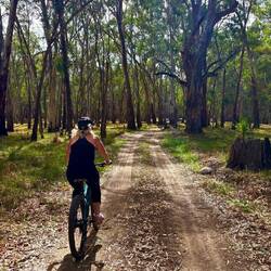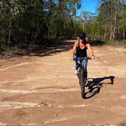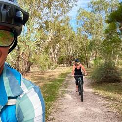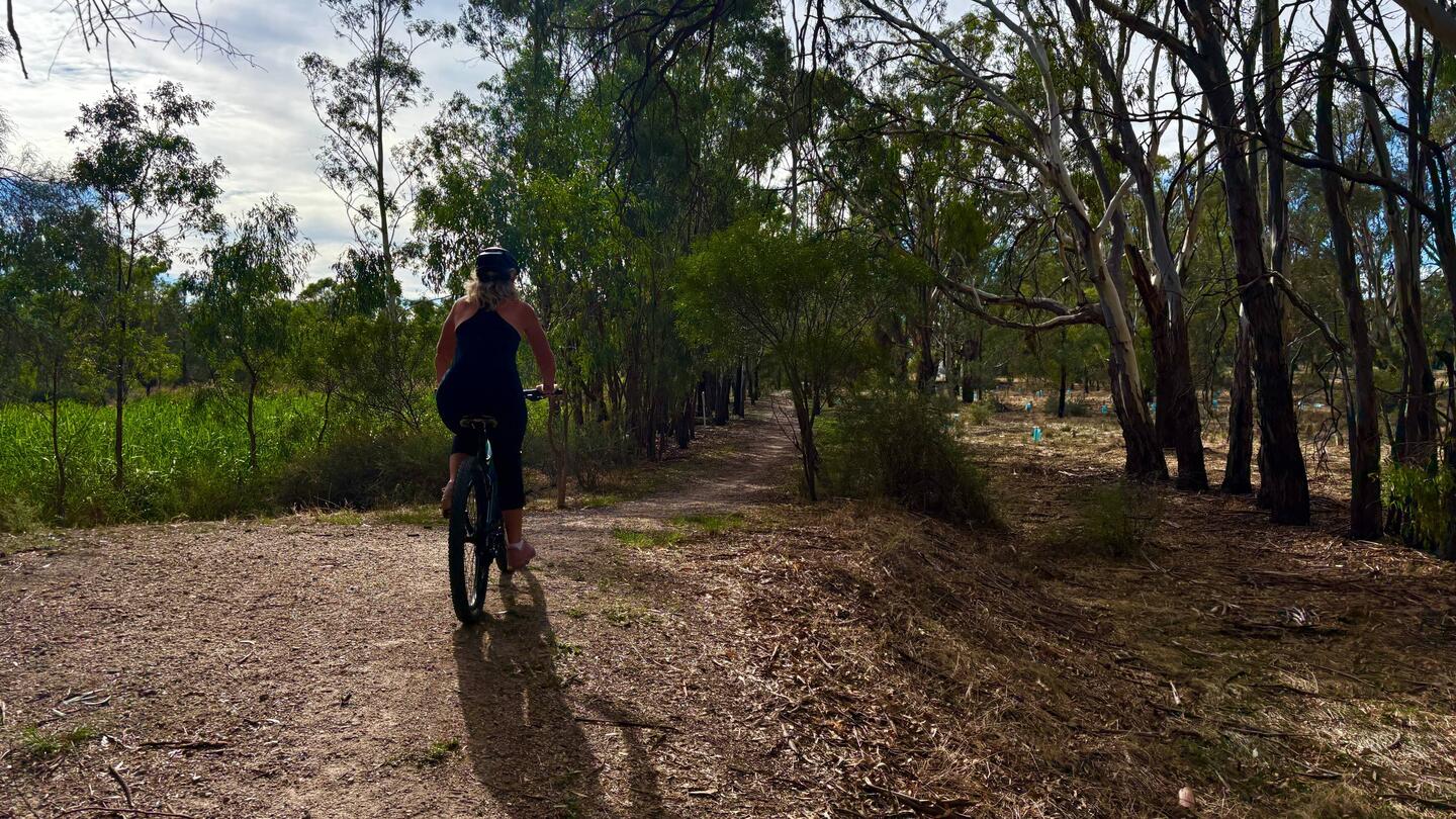 There are a number of fire trails in the area and we took the Showground Fire Trail, a 7km trail through eucalyptus, pine and iron bark trees. The trail was often sandy, rocky and very rutted which the Seagull found a breeze and which tested Justine’s limited MTB skills 🚴🚴🏼♀️