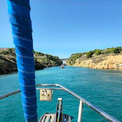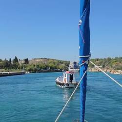 Jasmin hat durch Zufall am Flughafen von einem Segler erfahren, dass der Kanal von Korinth doch um ein Monat länger geöffnet hat. Allein diese Info ersparte uns gut 40 Stunden Umweg um den Peloponnes, und war uns die etwa €210,- für die Passage wert.