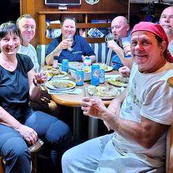 Mit ausreichend Wein und Bier feierten wir noch bis spät in die Nacht meinen Geburtstag und auch ein bisserl Abschied, denn Michi und Stef verließen das Schiff, weil deren richtiges Leben wieder rief.