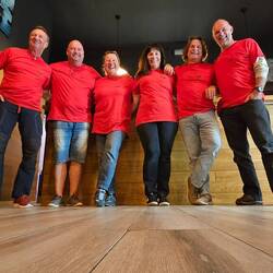 Wir hatten T-Shirts designt, knallrot mit Aufdruck hinten und vorne, damit wir uns nicht verlieren.