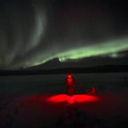 Die Nordlichter am Anreisetag im Hauptcamp sowie die Tatsache für die gesamte Woche seine eigenen Hund und Schlitten zu besitzen.