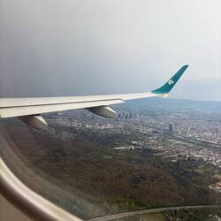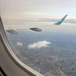 Der erste Flug führte uns gegen halb 7 nach Frankfurt. Nach nur wenigen Minuten auf Flughöhe startete die Crew auch schon wieder mit dem Landeanflug.