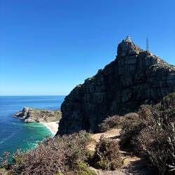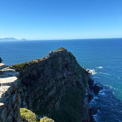 Unser nächster Stopp war Cape Point. Steiler Aufstieg, viele Treppen, steiniger Untergrund, schmale Pfade – Sporteinheit inklusive. Oben angekommen: 200 Meter tiefe Klippen, die sich fast senkrecht ins Meer erstreckten, ein alter Leuchtturm und dieser endlose Blick über den Atlantik.