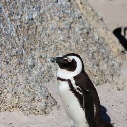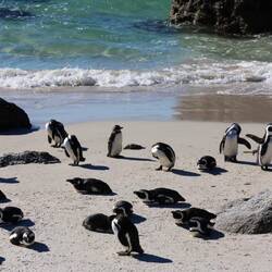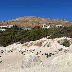 Weiter ging es zum Boulders Beach. Der Eintritt zum Nationalpark kostete 25 € pro Person – aber definitiv lohnenswert. Der Boulders Beach ist einer dieser Orte, die sich fast unwirklich anfühlen: weißer Sand, riesige runde Granitfelsen – und mittendrin eine Kolonie afrikanischer Pinguine. Nicht nur eine Handvoll, sondern hunderte tummelten sich am Strand, brüteten ihre Eier aus, watschelten aus dem Wasser oder bauten fleißig Nester. Auf einem Holzsteg läuft man direkt über das Reservat und schaut den Tieren beim Treiben zu. Richtig urig, wie sie mit ihrem watschelnden Gang so unglaublich beschäftigt wirken. Was viele nicht wissen: Die afrikanischen Pinguine stehen auf der Roten Liste der bedrohten Tierarten – umso schöner, sie hier so zahlreich zu erleben.
