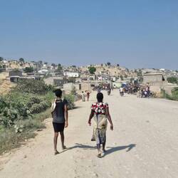 Der Plan für heute ist gleich morgens in die Werkstatt um auch die linke hintere Bremstrommel ausdrehen zu lassen. Derweilen machen wir einen Ausflug durch die Stadt mit dem Moped. Mich erinnert das sehr an Bethlehem, mit den Hügeln und dem Sand. Wir fahren nicht die Hauptstraße, sondern eine kilometer lange Parallele, durch üble Faciellas. Es gibt aber nur wenig Möglichkeit links oder rechts ab zu fahren, da der Weg auf einem Art Damm gebaut ist und die Häuserreihen links und rechts sehr eng beieinander stehen.