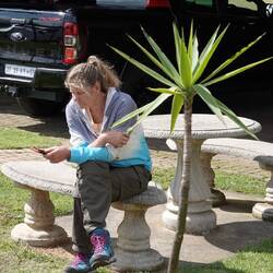 Früh morgens fahren wir ohne Kaffee gleich weiter Richtung Pretoria, der Verwaltungshauptstadt und Regierungssitz von Südafrika. Daneben gibt es noch 2 weitere Hauptstädte: Capetown als Legeslative und Bloemfontain als Judikative. Das nur 40 km von Pretoria entfernten Johannesburg ist lediglich Provinzhauptstadt der Provinz Gauteng. In einem kleinen verschlafenen Nest, wo um diese Zeit Sonntag Morgen kein Weiser auf der Straße zu sehen ist, machen wir uns auf die Suche unsere alten Simkarten wieder neu auf zu laden. Dabei stoppt uns eine zunächst unfreundliche Polizeikontrolle. Der schwarze Sheriff will Papiere, Führerschein, Versicherung und was weiß ich noch alles sehen. Dann mischt sich seine Kollegin ein und wir können weiter. Zum Dank bekommt sie noch ein schönes Kompliment von mir, wegen ihrer künstlerisch geflochtenen Haare.