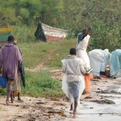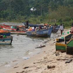 Am Morgen fällt der erwartetet Sonnenaufgang dem trüben Himmel zum Opfer, aber der nächtliche Fischfang ist den Mienen der Fischer zu beurteilen einigermaßen akzeptabel ausgefallen. Einen kleine mit 2 Kg haben wir auch ergattert für 20.000 (6,70E) mit ausnehmen und entschuppen. die Leute vom Fischerdorf erzählen uns dass neben an in der Schule deutsche arbeiten würden. Wir wollen Ihnen eine Besuch abstatten, aber der Manager erklärt uns es seien alle auf Heimaturlaub, den es sind ja gerade Ferien in Tansania. Die Schule und das Waisenheim sind in den 90ern von einem Deutschen geründet worden und wird weiterhin von einer deutschen kirchlichen Institution unterstützt.