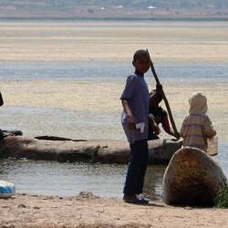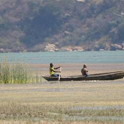 Abends wird dann die Suche nach einem Schlafplatz zum Fiasko. Da der gestrige Platz am See so schön war, visieren wir wieder einen See zum wild Campen an. rund um den See führt nur ein Weg mit Hütten am Rand alle Daumen lang. Für de Stichwege die zum See führen sind wir zu breit oder zu hoch. Es dämmert schon und Julias Suhaeli Kenntnisse reichen nicht um uns bei einem kleinen Laden , der wenigstens eine kleine ebene Fläche davor bietet, das Einverständnis zur Übernachtung zu holen. Also fahren wir ein paar Meter weiter und bleiben einfach am Rand des Weges stehen. Es ist schon lange dunkel und wir sind mit dem Abendessen schon fertig, als draußen ein Stimmengewirr immer lauter wird, bis es schließlich an unsere Tür klopft. Draußen stehen 25 locals, wovon wenigstens einer gut Englisch spricht. Sue haben Angst vor uns und wissen nicht was wir wollen. Ich erkläre dem jungen Mann auf seinem Fahrrad, dass wir Touristen sind und wir keinen Campingplatz finden und deshalb hier bis morgen früh übernachten wollen. Er übersetzt alles und meint zu uns gerichtet alles kein Problem. Eine Alte lässt aber keine Ruhe. Sie besteht darauf den Dorfhäuptling um Erlaubnis zu fragen. " Ok, do this, I'm waiting" meine ich noch ganz freundlich. Doch als dann ein junger Schnäsel mit seiner Sichel rumfuchtelt und nach money fragt platzt mir der Kragen. In einer Lautstärke, dass der Haufen im Nu still ist schrei ich den sichtlich um der Situation verlegen Dolmetscher an: "Now we are traviling 2 Years to whole Afrika, but this is the most unfriendliest Village of the whole Continent! Say this to that people!" Ihm ist das augenscheinlich äußerst peinlich " I am leaving!" meint er verlegen, übersetzt aber vorher noch brav was ich gesagt habe.