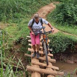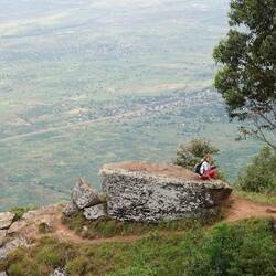 Am nächsten Tag stehen zwei view Points an, diese mir den Mountainbikes zu erfahren. Atemberaubende Aussicht belohnen für 26 km und 750 Höhenmeter! Schon auf der Rückfahrt in Sichtweite zum Dorf, nehme ich einen vermeintlichen Short Cut den steilen Berg hinunter. Natürlich rutsche ich aus und ein lautes "Scheiße" rutscht mir heraus. Das bringt den Anwohner des Hauses auf den plan. Er steckt seinen Kopf vom Gartentor heraus und sagt in fast akzentfreien Deutsch: "Hallo, gibt's Abe Probleme? Habt ihr euch verfahren?" Ein Tansanianer, der mit einer Deutschen verheiratet ist, seit 7 Jahren in Dortmund lebt und mit seiner Familie gerade auf Heimatbesuch ist. er erzählt uns, dass es in Tansania zwar so etwas wie eine Baugenehmigung gibt, sich aber im ländlichen Bereich keiner daran hält. Jeder baut so wie er will und wo er kann!
