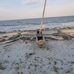 Der weitere Plan ist mit den Fahrrädern nach Sansibar über zu setzten und die Insel per Drahtesel zu erkunden. Am Sonntag brechen wir von dem alten Campus auf, um an der Küste entlang, südwärts Richtung Daressalam der Hauptstadt Tansanias zu fahren. Wir müssen zwangsläufig in Pangani den gleichnamigen Fluss überqueren. Es ist die einzige Möglichkeit ohne 100 km über Piste ins landesinnere fahren zu müssen. Die alte Fährverbindung ist seit Februar aufgrund eines Schadens in "Service", wie man uns erklärt. Die neue Brücke sollte schon fertig sein. Beim Besuch der Präsidentin im Februar wurde verkündet die Brücke sei zu 53 % fertig. Jetzt 5 Monate später sehe ich eine Baustelle, die gerade mal so angefangen hat. Prozentrechnung scheint hier auch anders zu funktionieren. Eine Behelfsbrücke ist nur zwischen 18.00 und 7.00 morgens zu befahren, allerdings gibt es zu Mittagszeit ein Zeitfenster, wo für jeweils eine halbe Stunde der Verkehr immer nur in einer Richtung durchgelassen wird. Wir haben Glück und müssen nur 30 Minuten warten. Allerdings rumpelt das Eisenkonstruckt trotz angeblich 50 t Nutzlast derart, dass Julia erst wieder am anderen Ende zu atmen beginnt. Es geht auf kleinen unbefestigten Wegen zwischen großen Annanas Plantagen und Sisal Flachsfeldern immer wieder durch kleine Dörfer und Ansiedlungen, wo die Menschen freundlich winken und man immer wieder ein "how are you" oder "welcome" mit hoch gestreckten Daumen hört. In einem kleinen unbedeutenden Ort Namens Ushongo mit ein paar Ferienhäusern direkt am Meer, gibt es die erste Fährverbindung nach Sansibar. Wir erkundigen uns wann morgen früh das erste Boot ablegt und um den Preis. 7.00 Abfahrt und 50.000 Schilling pro Person zuzüglich 7.000 für das Fahrrad war die Auskunft des freundlichen und gut Englisch sprechenden jungen Mannes. Wir würden damit an der nördlichen Spitze der Insel ankommen und hätten dann eine 65 km Etappe durch die Inselmitte, um zum Ort Sansibar und der berühmten Stonetown zu gelangen. 4 Tage haben wir für die gessmte Insel eingeplant. Wir übernachten heute am Ushongo Beach Ressort, wo uns der Besitzer einen Stellplatz vor dem Haus mit Stromanschluß anbietet. Es wird etwas eng dorthin und beim rückwärts einparken schaut mir der Bar Angestellte zu, wie ich einen Haupt-Ast des halbwüchsigen Baumes direkt vor dem Eingang abfahre. Dem Auto passiert bei sowas (meistens 😇) nichts. Die Bäume sind hier alle so trocken, dass der Ast sofort vom Stamm abbricht. Aber es ist Schade um den schönen Baum und so muss der arme Barmann sich erst mal eine bayrisch-englische Schimpfarie anhören. Wir laden die Fahrräder ab um alles für morgen vorzubereiten. Bei einem kleinen Ausflug dem Küstenweg entlang finden wir gerade eine Frau, die in einer großen Pfanne Fische über dem offenen Feuer fritiert. Dazwischen hat sich auch eine einzige Languste verirrt, die uns natürlich zuerst ins Auge und darauf zusammen mit zwei Fischen in den Rucksack springt. Wir essen unser Fingerfood standesgemäß mit einer kühlen Flasche Savignon Blanche direkt am Strand, mit den Füßen im indischen Ozean und die Überreste unseres Males übergeben wir sogleich dem Erzeuger zurück. Mittlerweile hat sich das Resort gefüllt. Ca. 30 junge Spanier allesamt Schulabgänger ohne Ausbildung sind für 3 1/2 Wochen hier als Volontär. Sie unterstützen Schulen und morgen räumen sie den Strand sauber. Eigentlich eine gute Sache, aber die jungen Menschen feiern natürlich gerne. Was mir prinzipiell ja nicht zu wider ist. Aber dass der Barbesitzer um seinen jungen Gästen gerecht zu werden zwischenzeitlich ein Notstromaggregat ausgerechnet direkt vor unser Nase aufgestellt hat war so nicht ausgemacht. Natürlich springt das Teil genau da an, wenn ich ins Bett gehe. Bis ich mir überlege wie ich das Scheiß Teil lahmlege, ohne dass sie die Manipulation weder gleich bemerken, noch gleich beheben können, kommt der Strom wieder und Honda ist ruhig. Natürlich feiert die spanische Bande noch weiter bis weit nach Mitternacht. Nach kurzer unruhiger Nacht klingelt um 5.45 der Wecker. Schnelles Frühstück reingewürgt, alles noch packen für 4 Tage - soviel wie nötig, so wenig wie möglich und dann schnell zur Fähre. Es sind nur 5 Minuten dahin und so schaffen wir es pünktlich. Zunächst gibt es die üblichen Diskussionen um den Preis, der freundliche junge Msnn von gestern ist natürlich nicht mehr da, dafür ein dümmlich aussehender Junge mit spärlichen Englisch Kenntnissen. Die Fahrräder sollten jetzt statt 7.000 Schilling 20.000 kosten. Mit zu wenig Schlaf ist meine Zündschnurr sehr kurz und der Funke hat gereicht! Von dem kleinen schwarzen Vollidioten, der nicht einmal 50 + 50 zusammen zählen kann, lasse ich mich nicht bescheißen. Irgendwann gibt er auf und nimmt unser Geld - Eigentlich! Zwischenzeitlich sind mindestens 30 weitere Leute mit Kind, Kegel und ein Haufen Gepäck, von Koffern, Säcken und Tüten bis hin zu lebenden Hühnern, eingetrudelt. Um 7.45 beginnen 2 kräftige junge Burschen den kleinen Holzkahn, der wenigstens 2 Außenborder hat eilig zu beladen. Dann werden die vornehmlich weiblichen -zumindest die jüngeren - Passagiere durch das Wasser zum Boot getragen. Wir sollen mit unserem Gepäck und den Fahrrädern noch 5 Minuten warten. Wahrscheinlich bekommen wir besondere Plätze!