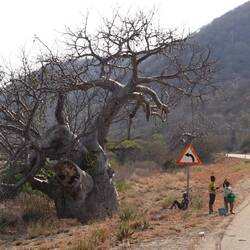 Mit gefühlten 1,5 Promille ist das Überholen nicht einfacher, aber deutlich entspannter und Doris- will sagen Julia- schimpft auch nicht soviel. So wie die Hauptverkehrsstraße mit zunehmenden Abstand zur Hauptstadt besser wird, es gibt bisweilen bergauf schon "climbing lines", so nimmt auch der Verkehr ab. Es erwartet uns aber noch ein Pass, der uns von 400 m auf 1600 m bringen soll. Das Untersetzungsgetriebe wird zum Einsatz gebracht, weil die überladenen, fahrenden Schrotthaufen es an den Steilstellen nur noch auf 5 km/h bringen. Ich überhole in Linkskurven innen im Schotter oder an einer imaginären Überholspur die nur ich sehe, sobald ich mehr als 3 LKW Längen voraus schauen kann. Natürlich werden wir zweimal von der Polizei deshalb aufgehalten. 30.000 Schilling kostet Überholen im Überholverbot in Tansania. Nachdem der erste Polizist nach kurzer Diskussion auch mit 10.000 einverstanden ist, mach ich nach dem steilsten Stück mit dem Ordnungshüter kurzen Prozess. Noch bevor er etwas sagen kann, halte ich ihm einen 10.000 unter die Nase und sage freundlich aber bestimmt: "It's ok. I'm in hurry, otherwise this slowly guys comming again!" Auch beim dritten Polizisten am Pass geht die Nummer gut, der 10.000er liegt schon bereit. Nur beim vierten habe ich keinen Nerv mehr. Ich ignoriere ihn und fahr vorbei. Julia will meine Rechnung nicht verstehen, dass ich somit in der letzten Stunde 60.000 Schilling verdient und ganze 30.000 zuletzt gespart habe. Die Rechenweise habe ich mir bei unserer Bundesregierung abgeschaut!