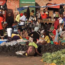 Gut 80 km geht es heute zunächst am Lake Malawi entlang. Die großen Schlaglöcher der Straße sind teilweise geflickt mit einfachem rotem Erdreich, das nur vom LKW per Schaufel lose in die Löcher geworfen und dann automatisch von selbst verdichtet wird, vom nachkommenden, darüberfahrenden Verkehr. Nach ein paar km stoßen die beiden Südamerikaner Aida und Juan wie Makkaroni eigentlich heißt, wieder zu uns. Makkaroni ist sein Familienname, weil der Großvater aus Italien stammt. Wir haben beschlossen die beiden noch ein bischen mit zu nehmen. Aida ist ohnehin nur eine halbe Portion und Juan hat seine Figur auch vom Opa, also ist es sogar möglich zu viert vorne zu sitzen. Die Straße führt weiter ins Landesinnere. Über einen Pass mit wunderbaren Blick auf den See, dessen gegenüber liegendes Ufer trotzdem nicht zu sehen ist, schrauben wir uns wieder auf über 1.000 m. Der Verkehr in Malawi ist übersichtlich. Wenig LKW, fast gar keine PKW und ein paar völlig überladenen Minibuse, alles gerade auch bergauf leicht zu überholen. Wir treffen in Mzuzu einer der größeren Städte des Landes wieder die beiden Norddeutschen Wolle und Brigitte mit ihrem Hilux. Dank unseren beiden Südamerikanern können wir hier wieder günstig Geld tauschen. Sie haben von einem Inder den Kontakt eines Schwarzmarkthändlers der uns 1 $ zu 4400 Kwachas tauscht. Der offizielle Kurs wäre 1738! Diese Schwarzmarkthändler spekulieren rein auf einen weiteren Verfall ihrer Währung um dann ein Geschäft zu machen. Auch sind sämtliche großen Investitionen in dem wirtschaftlich unstabilen Land nur in US Dollar möglich.