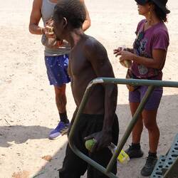 Wir füllen im Shoprit unsere Vorräte auf und obwohl es gerade mal wieder keinen Alkohol gibt und trotz des guten Tauschkurses sind wir 75 € los. Das Gemüse und das köstliche Schmalzgebäck am Markt sind da viel billiger. Ein Art kleine Schmalznudel kostet nicht einmal 10 Cent - offizieller Kurs - Schwarzmarkt 3 Cent.