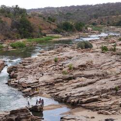 Wir starten bei leichten Nieselregen, der sich aber legt, sobald wir die Hauptstraße erreicht haben. Eigentlich ist der Begriff Straße für dieses Schlagloch durchsähte, an seinen Rändern tief abgenagte, frühere Teerband eine Beleidigung für die gleichnamigen europäischen Verkehrswege. So erbärmlich wie die Straßen, so ärmlich sind auch die Menschen in dieser Gegend. Kleine Stroh bedeckte Hütten und die Kinder nur mit dreckigen, zerfezten Kleidern. Nach einer Stunde - also 30 km - wird es besser und die restlichen 100 km bis Tete können wir wieder richtig Gas geben. Wir durchqueren Chiùta, einem Übertage - Steinkohle Abbau Revier, mit einem Vorkommen das 25 % des aktuellen Weltbedafs deckt. Man sieht wieder Ziegelhäuser, Geschäfte und Menschen in sauberer Kleidung. Dazwischen aber auch am