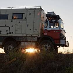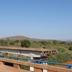 Beim Aufwachen können wir uns begeistern, dass wir gestern die Auffahrt doch noch gemacht haben. Bei Sonnenaufgang ergeben sich wunderbare Ausblicke und Eindrücke. Bei der Abfahrt war Julia etwas bedrückt: Sie hat die ganze Nacht überlegt, was ist, wenn sie mich an der nächsten Mautstation wegen der gestrigen Aktion einsperren! Zu mindestens hab ich heute zum Frühstück etwas gegessen, die mosambikanischen Gefängnisse sollen ja kulinarisch nicht so der Hit sein, tröste ich sie. Kurze Zeit später sind wir schon an einer. Weiträumig Umfahren ist nicht, da eine Brücke davor ist. Also No Risk, No Fun! Ran an das Glashaus, Julia streckt unsren Zettel der road tax vor. Es dauert lange 30 Sekunden, da sehen wir unseren Zetel wieder, ein grünes Licht und eine sich öffnende Schranke. Also hab ich doch Recht gehabt und manchmal muss man sich sein Recht einfach nehmen. Das einzige was mich jetzt im Nachhinein noch ärgert, ist das, dass ich den sprintenden Halbaffen mit seinem Handy keine Aufgestrichen habe.