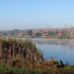Mittags fahren wir dann 40 km Richtung Westen nach Hartbeesrpoort. Dort soll es eine Seilbahn, ein Outdoorcenter, einen Damm und eine Möglichkeit geben sich Mountainbikes aus zu leihen. Wir müssen dazu einmal quer durch Pretoria durch und Herr Google kennt entweder die schnellste oder die kürzeste, neuerdings ja auch noch die ökologischste Strecke, aber nicht die, die auch sicher ist. Egal solange die Husky läuft bin ich da Schmerzfrei, wobei es schon befremdlich ist, wenn man in nur 20 Minuten von bester Wohngegend plötzlich sieht, dass unter den Brücken Menschen Feuer anzünden und dort leben. Überhaupt fühlt man sich hier in den Ballungszentren immer wie eingesperrt. Es mutet zunächst sehr europäisch an. Viel Verkehr, breite Straßen, große Einkaufszentren und noble Wohngegenden. Erst auf den zweiten Blick nimmt man die Security guides vor jedem Laden und die 2 m hohen Mauern mit weiteren 1 M hohen Stacheldraht und/oder Elektrodrähten oben auf wahr. Zu diesen eingezäunten Wohnvierteln, gibt es meist nur ein Zufahrtstor, das bewacht ist. Einmal drin, ist dann heile Welt. Spiesbürgerlichen sauber geschnittene Rasenflächen mit Blumenbeeten und sauber getrimmten Sträuchern vor dem Haus. Zwischen den Häusern meist auch hohe Mauern, aber wenigstens ohne Stacheldraht. Und die Zufahrt mit elektrischem, fernbedienbaren Schiebetor.