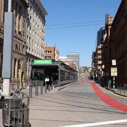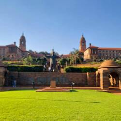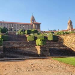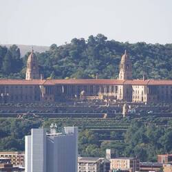 Sonntags ist immer der beste Zeitpunkt eine Großstadt zu erkunden. Wie bei uns treibt es die ganzen Städter am Wochenende hinaus aufs Land und die Straßen sind frei. Und heute ist auch noch Muttertag, der auch hier gefeiert wird. Also auf nach Pretoria. Obwohl wir gestern in der Dunkelheut zu Fuß nach Hause marschiert sind, hat Julia zur Mittagszeit am belebten Hauptplatz und historischen Kern der Hauptstadt kein gutes Gefühl und drängt zur Weiterfahrt. Zumindest reicht die Zeit für ein paar Fotos von den alten gut in Schuß gehaltenen historischen Gebäuden.