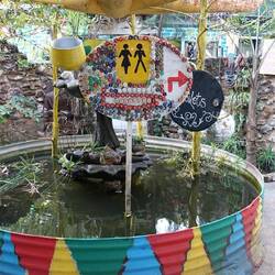 Unser kleines Abenteuer von gestern Abend, sieht heute Morgen im Sonnenschein halb so wild aus. Aber JuSe hat trotzdem erst eine Dusche verdient. Danach besuchen wir das mlilwane wildlife Sanctuary, einen der drei Nationalparks in Swasiland. Da aber der Campingplatz belegt ist, machen wir nur einen walk zu den Bienen Fresser Vögeln und wundern uns anschließend, dass man hier trotz Krokodile ungehindert Wandern und Radfahren darf. Wahrscheinlich wird am Exit Gate nicht gezählt! Obwohl Julia erst noch darauf drängt schnell weiter zu fahren, damit wir das geplante Abendziel vor Sonnenuntergang, welcher hier derzeit schon um 17.25 Uhr ist (es ist ja Winter, was wir angesichts der Temperaturen immer vergessen) erreichen. Trotzdem beschließen wir gemeinsam nach 5 km um zu kehren um das HOUSE OF FIRE zu besuchen. Die Location ist neben ihren Hundertwasser ähnlichen Design und guten Essen, mittlerweile in ganz Afrika wegen dem alljährlichen music festival BUSHFIRE bekannt. Nach eine Fotosession in dem weitläufigen Gelände beschließen wir zum Sonnenuntergang auch gleich noch hier zu essen. Ich fotografiere den Sonnenuntergang und Seski, ein kleines südafrikanisches Mädchen fordert mich auf Fotos von ihr zu machen. Wie ein richtiges Fotomodel, läuft sie zur Höchstform auf, sobald sie in eine Linse schaut!