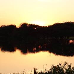 Um unser Ziel, eine schmale Landbrücke zwischen den zweiten und dritten See zum Merr zu nehmen, zu erreichen, betätigen wir uns erst mal wieder als Landschaftsgärtner. Als es zu endgültig zu eng wird, machen wir uns bei untergehender Sonne zu Fuß auf die Suche nach einem machbaren Weg, um dann doch zu beschliesen, hier stehen zu bleiben. Die Leute sind allesamt sehr freundlich - no stress ist das geflügelte Wort hier. Wir stehen unmittelbar vor einem kleinen vergitterten Kiosk, wo laute Musik an geht, als man uns sieht. Ich frage die Besitzerin, ob wir für heute hierübernachten können. Zum Dank kaufen wir ihr 4 Flaschen Bier ab. Diese sind Dank Tiefkühltruhe aber so kalt, dass sich beim öffnen erst einmal ein Bierkristall im Flaschenhals bildet.