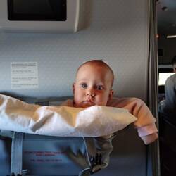 Flygresan finns faktiskt inte så mycket att berätta om, det segmentet som vi fasat mest för gick mestadels som en dans. Junie charmade både flygpersonal och medpassagerare med sina skratt och hade inga större problem vid start och landning då hon fick mysa till det med amning hos mamsen. När vi köade genom passkontrollen låg hon nyfiken och tittade på allt omkring i babyselen hos pappa.