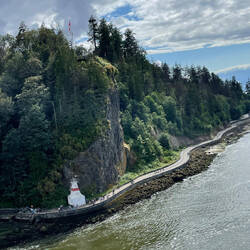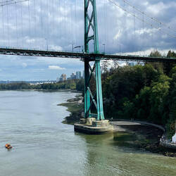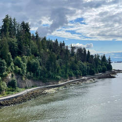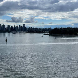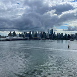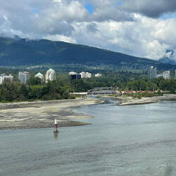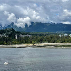 Das Wetter in Vancouver ist verhangen und nordseemäßig. Nieselregen.