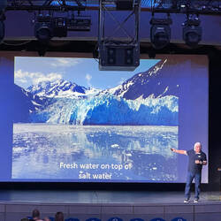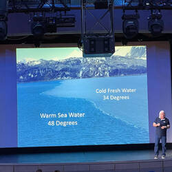 Von den Gletschern, die schmelzen, gibt es tidal rip streams. Das sind Ströme von Süßwasser, die sich nicht mit dem Salzwasser vermischen. Sieht wunderschön aus auf Fotos. In manchen Gletscherseen gibt es auch Süßwasser über dem Salzwasser. Süßwasser hat reflektierende Anteile, da kann man tolle Fotos machen.